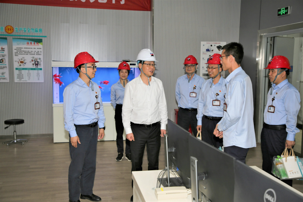 集團(tuán)黨委書記、董事長劉盛輝走進(jìn)集控室了解迎峰度夏能源保供情況。 徐新蘇 攝