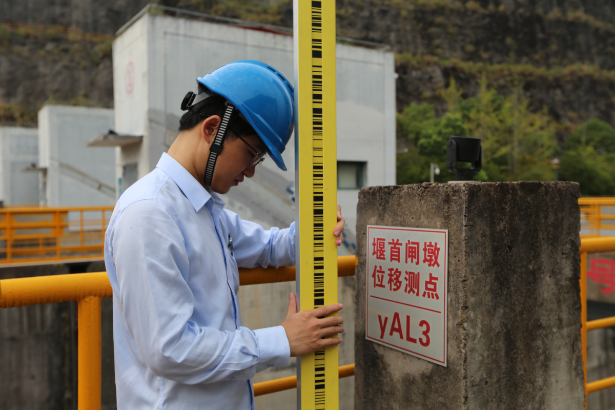 機組頂峰的響應迅速、組織有序、運行平穩,背后是一群水電人的嚴陣以待。早上5點30分,水工觀測班職工王琪、蔡建林、孫紀輝、朱鴻杰等青工已到達大壩觀測點,開始測量水工建筑物的各項維度。“提早測量,不僅可以減少氣溫、折光對測量誤差的影響,還能避免高溫作業。”蔡建林介紹說。
