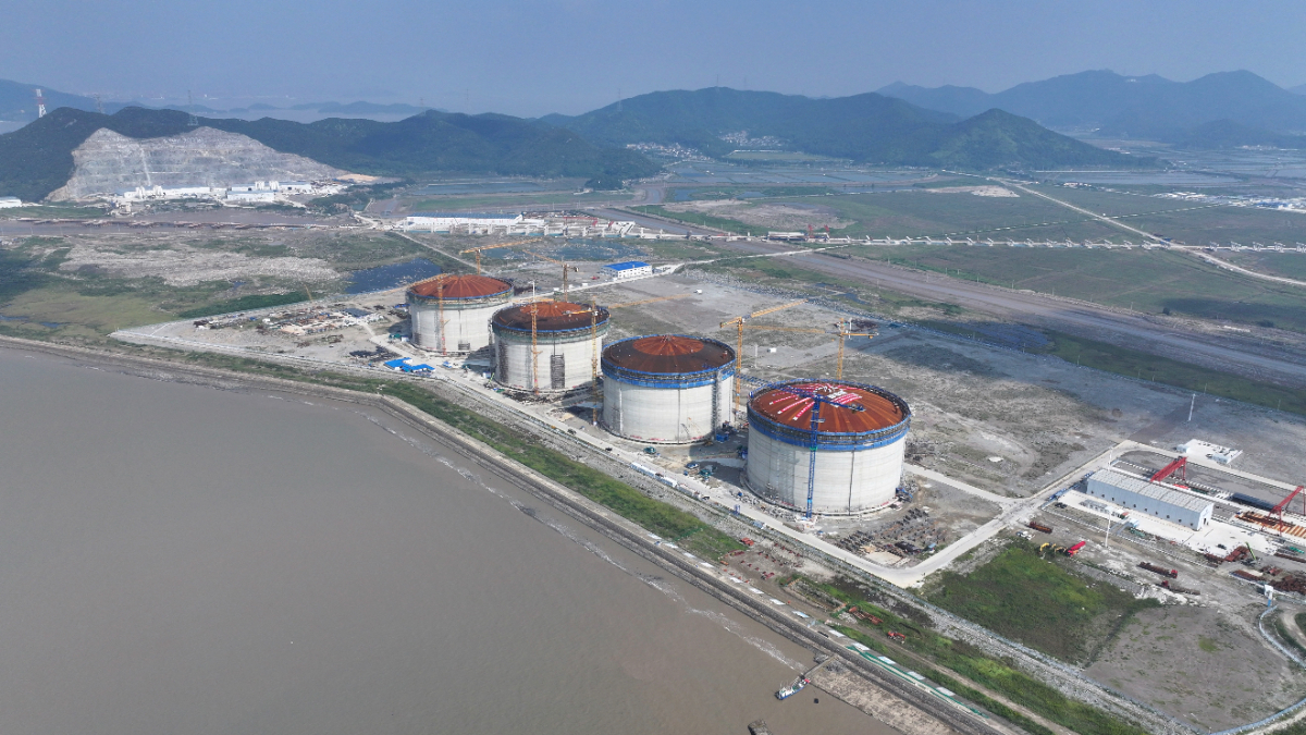10月10日,浙能六橫LNG接收站項目儲罐氣頂升全面完成。 周志南 攝