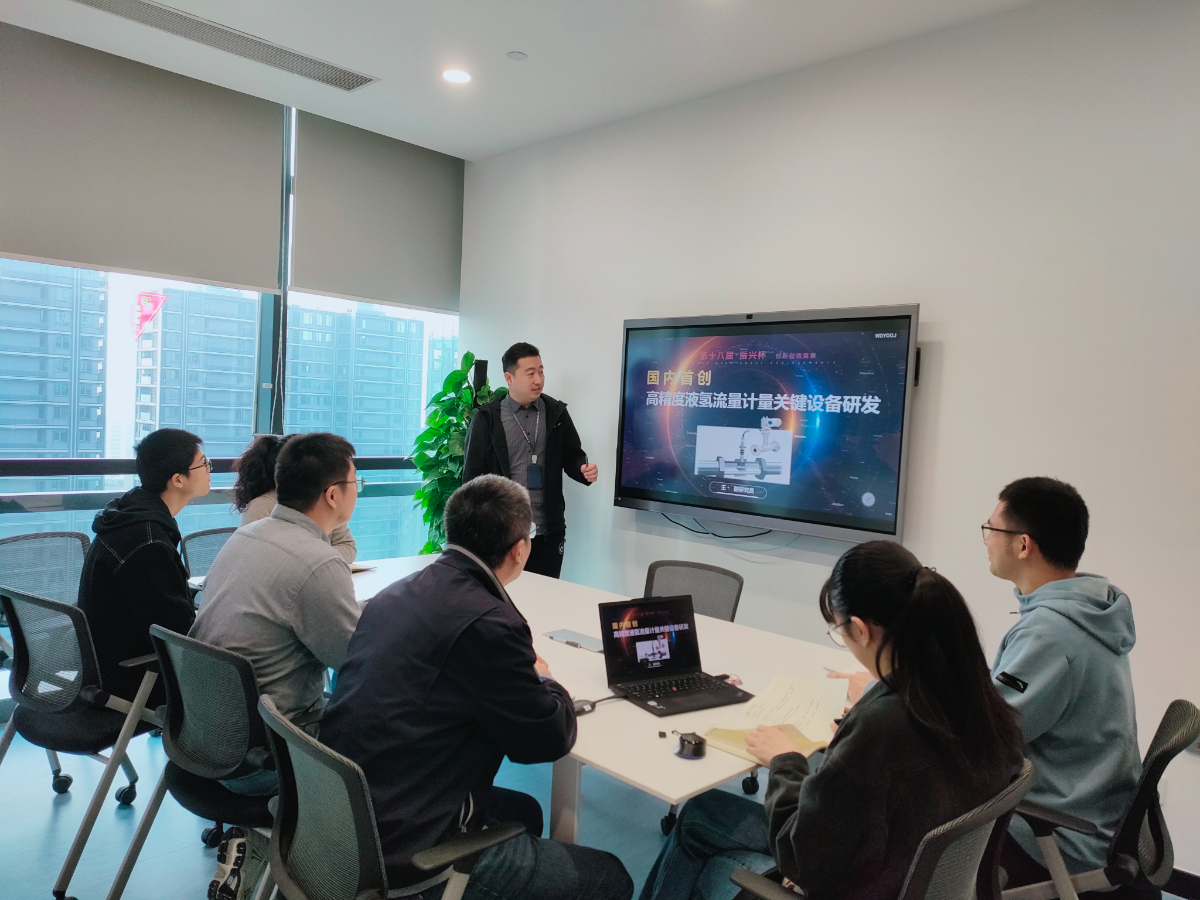 03-銅獎(jiǎng)項(xiàng)目-白馬湖實(shí)驗(yàn)室氫能(長(zhǎng)興)有限公司的《高精度液氫流量計(jì)量關(guān)鍵設(shè)備研發(fā)》青創(chuàng)團(tuán)隊(duì)成員們正在進(jìn)行項(xiàng)目研討。 王軍 提供