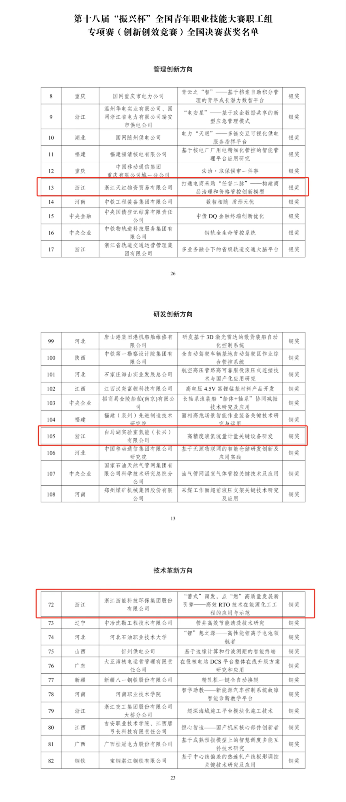 第十八屆“振興杯”全國(guó)青年職業(yè)技能大賽職工組專(zhuān)項(xiàng)賽(創(chuàng)新創(chuàng)效競(jìng)賽)全國(guó)決賽獲獎(jiǎng)名單。 “振興杯”賽事組委會(huì) 提供