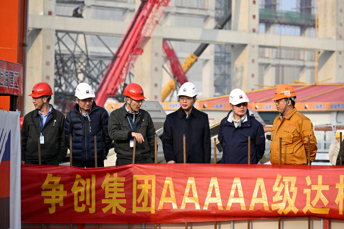 劉盛輝一行到臺(tái)二電二期建設(shè)現(xiàn)場(chǎng)了解項(xiàng)目進(jìn)展情況。 俞琬 攝