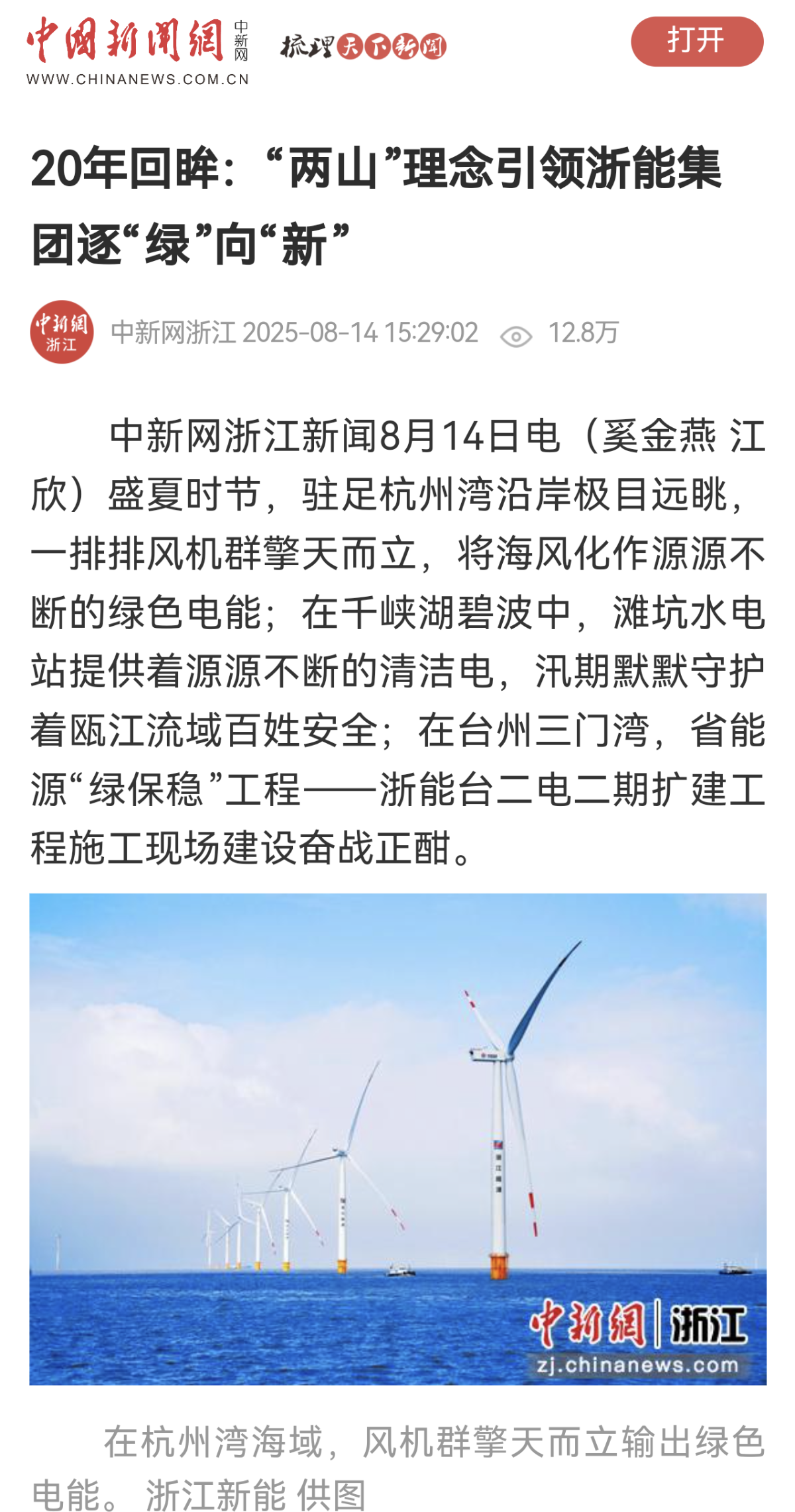 “兩山”理念浙能實踐 | 浙能集團:逐“綠”向“新” 點綠成金