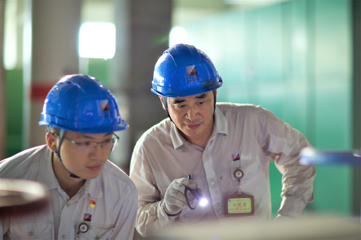浙能溫電維護(hù)部汽機(jī)一班副班長馬曉暉與班組骨干一起進(jìn)行設(shè)備消缺前檢查。 葛曉葵 攝
