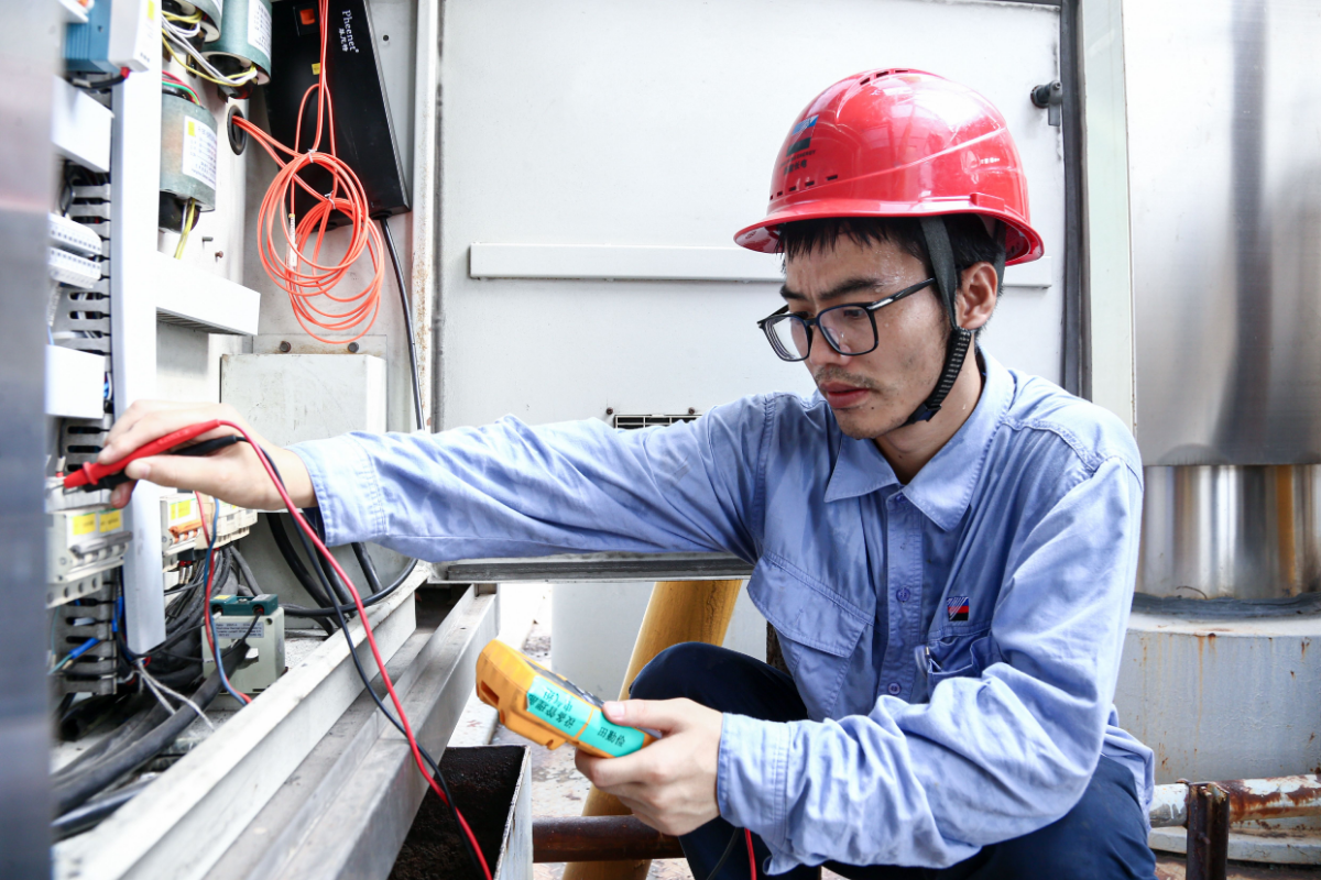 頭頂烈日,浙能燃氣平湖公司場站運行人員顧不得擦拭頭上的汗水,對場站設(shè)備進行全方面的維護和巡檢。 包融融 攝