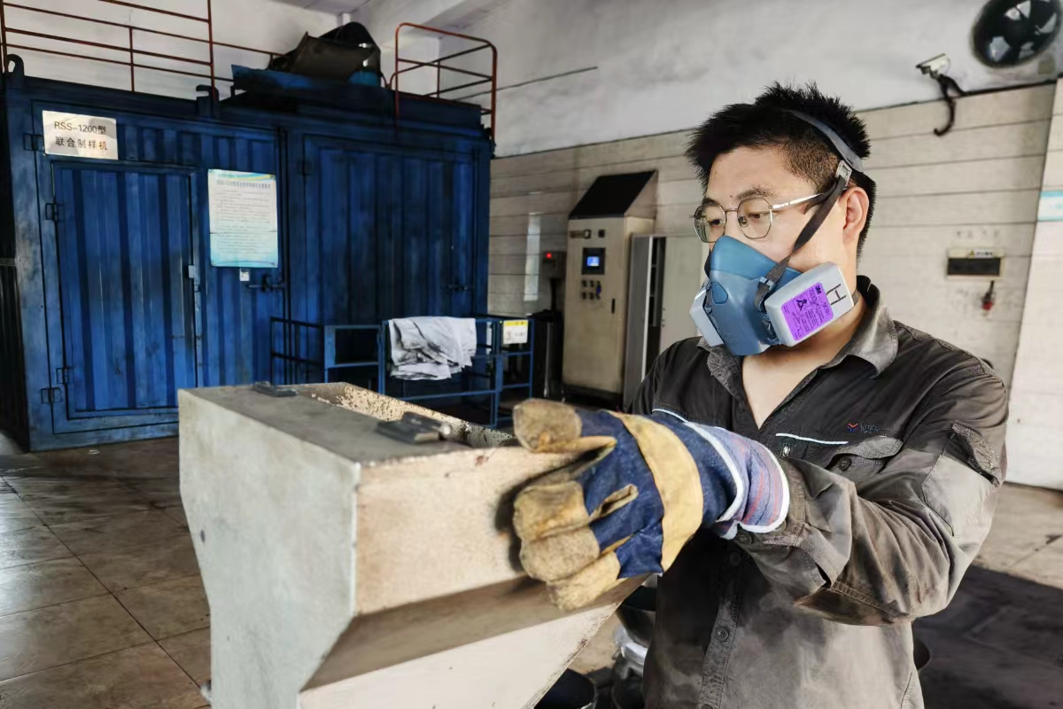 浙江越華在“熱辣滾燙”中筑牢電煤保供“第一關(guān)”,圖為采制人員對煤樣進行破碎。 葉其彬 攝