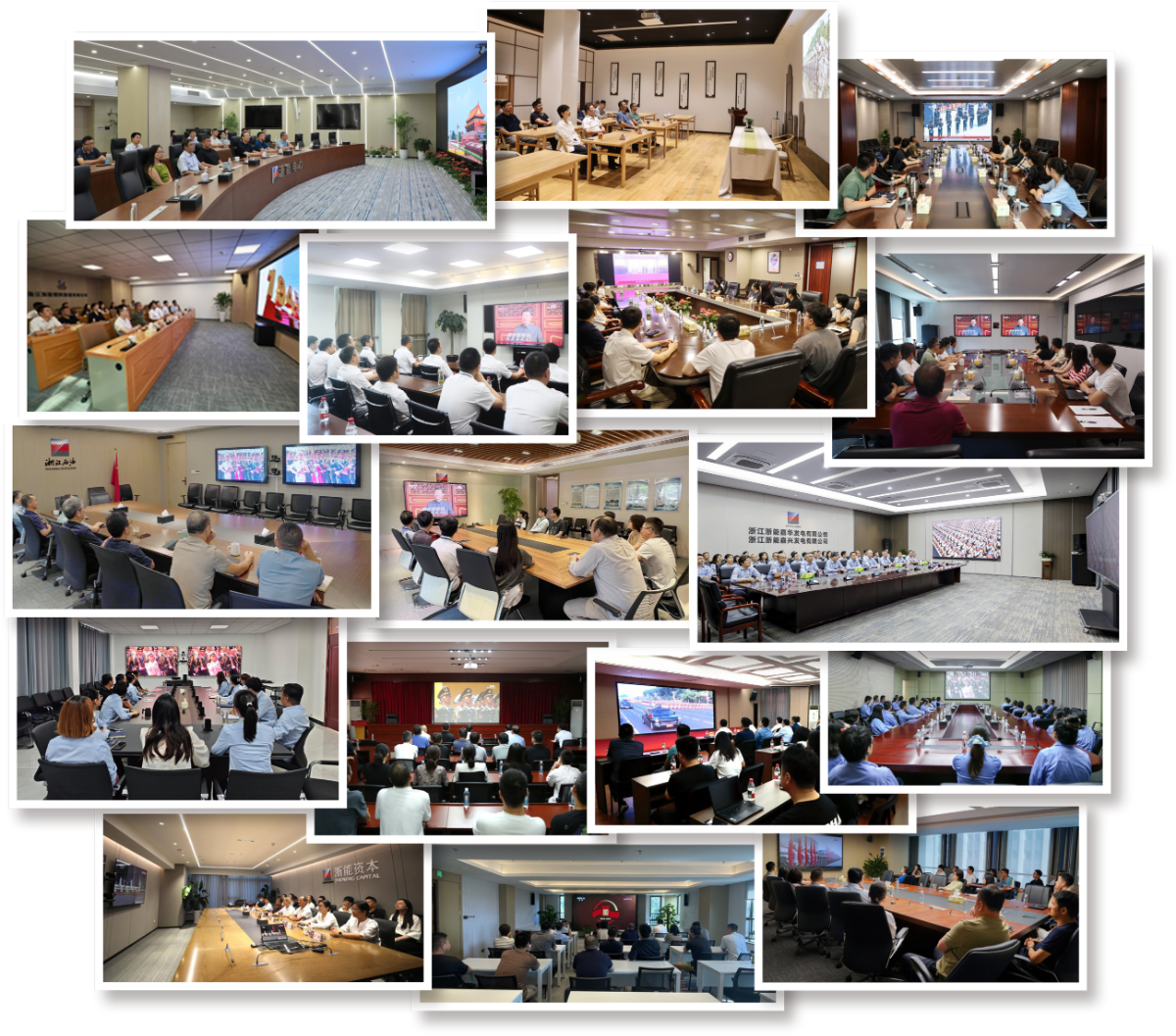 本網訊 9月3日上午,紀念中國人民抗日戰爭暨世界反法西斯戰爭勝利80周年大會在北京天安門廣場隆重舉行。中共中央總書記、國家主席、中央軍委主席習近平發表重要講話并檢閱部隊。浙能集團本部及系統各單位結合實際組織黨員干部群眾收看紀念大會現場直播,認真聆聽習近平總書記重要講話,共同見證這一莊嚴時刻。