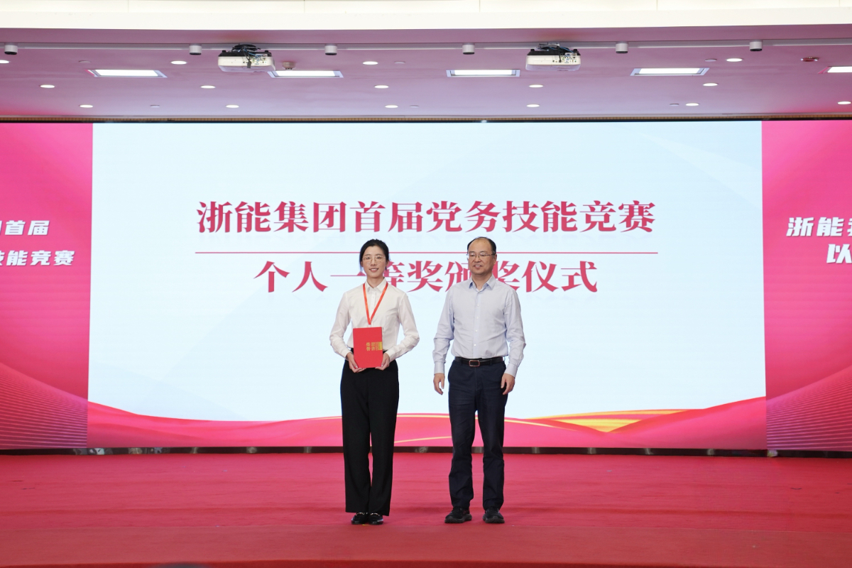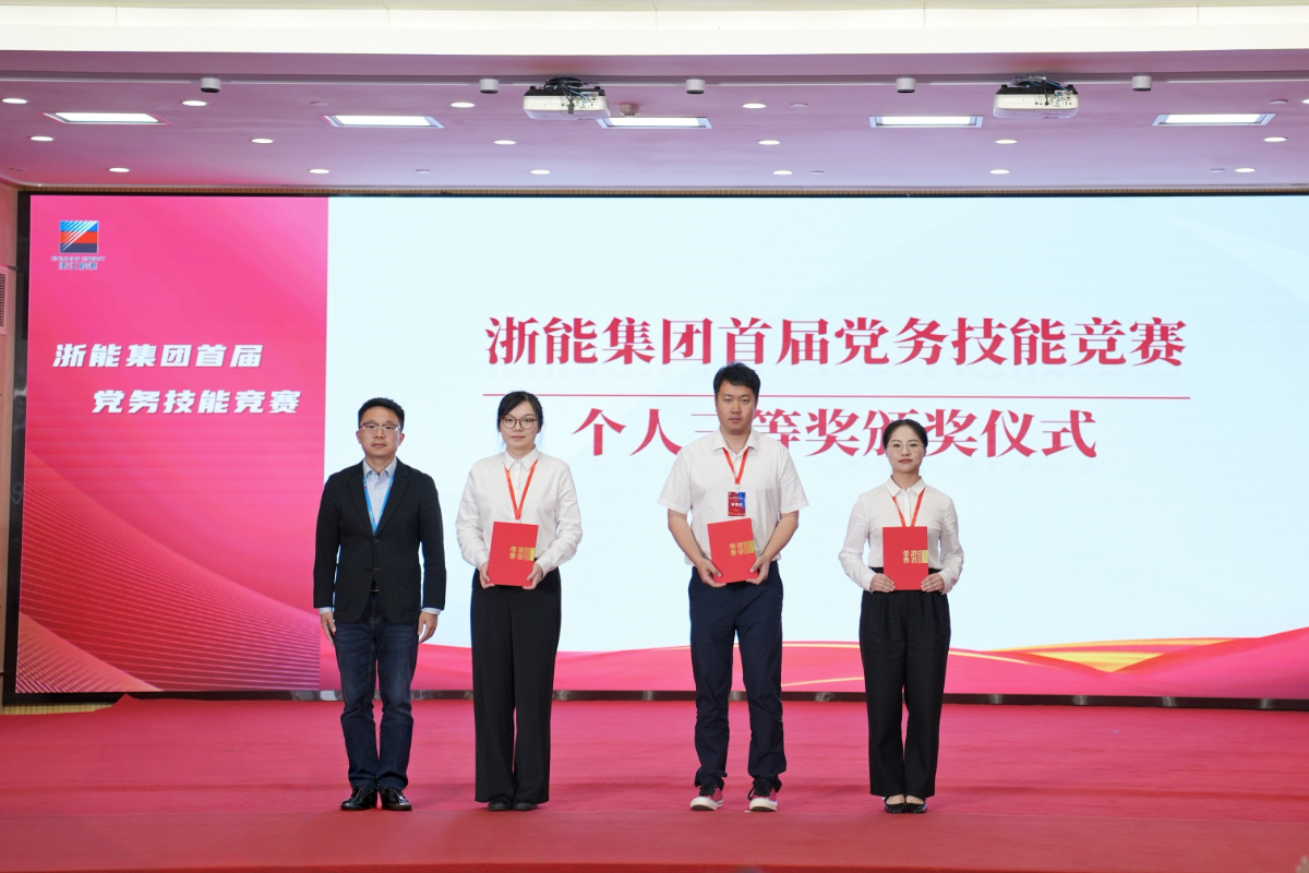 首屆黨務技能競賽全面展現了集團黨務工作者政治過硬、本領高強的復合型特質,生動呈現了黨建“軟實力”轉化為集團能源保供、綠色轉型“硬支撐”的具體路徑。經過激烈角逐,浙能科環隊獲團體一等獎,浙能資本隊獲團體二等獎,直屬企業一隊獲團體三等獎,張林晨獲個人一等獎,何琳、張樺楠獲個人二等獎,楊依杭、丁笛珂、毛超男獲個人三等獎,浙能科環榮獲優秀組織獎。