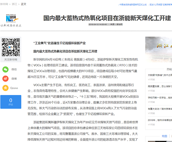 媒體聚焦國內(nèi)最大蓄熱式熱氧化項(xiàng)目在浙能伊犁煤化工開建