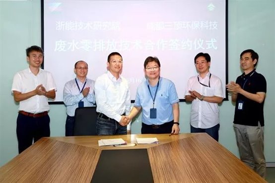 9月16日,浙能技術(shù)研究院與成都三頂環(huán)??萍加邢薰驹诤贾菖e行“廢水零排放技術(shù)許可”簽約儀式。此舉標(biāo)志著由浙能技術(shù)研究院自主研發(fā)的廢水零排放技術(shù)開啟了市場化應(yīng)用新征程。