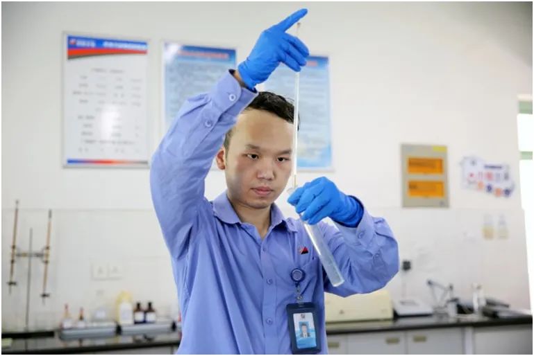浙能長電公司化學(xué)專業(yè)人員正在進(jìn)行中水取水化驗(yàn)